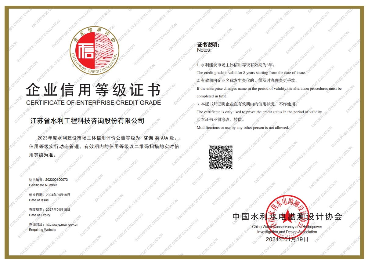 | 公司喜獲2023年度水利建設市場主體咨詢單位 信用評價AAA等級證書作者:admin 來源: 日期:2024-2-2 14:53:18 人氣: