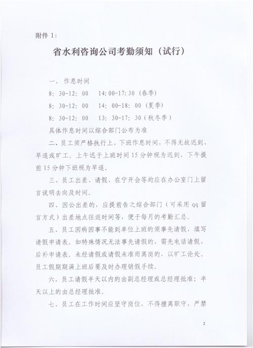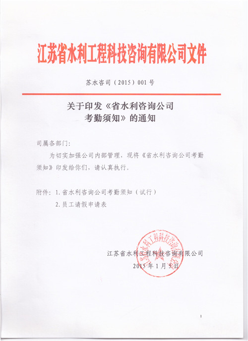 關(guān)于印發(fā)《省水利咨詢公司考勤須知》的通知作者:admin 來源: 日期:2015-1-5 16:22:51 人氣: