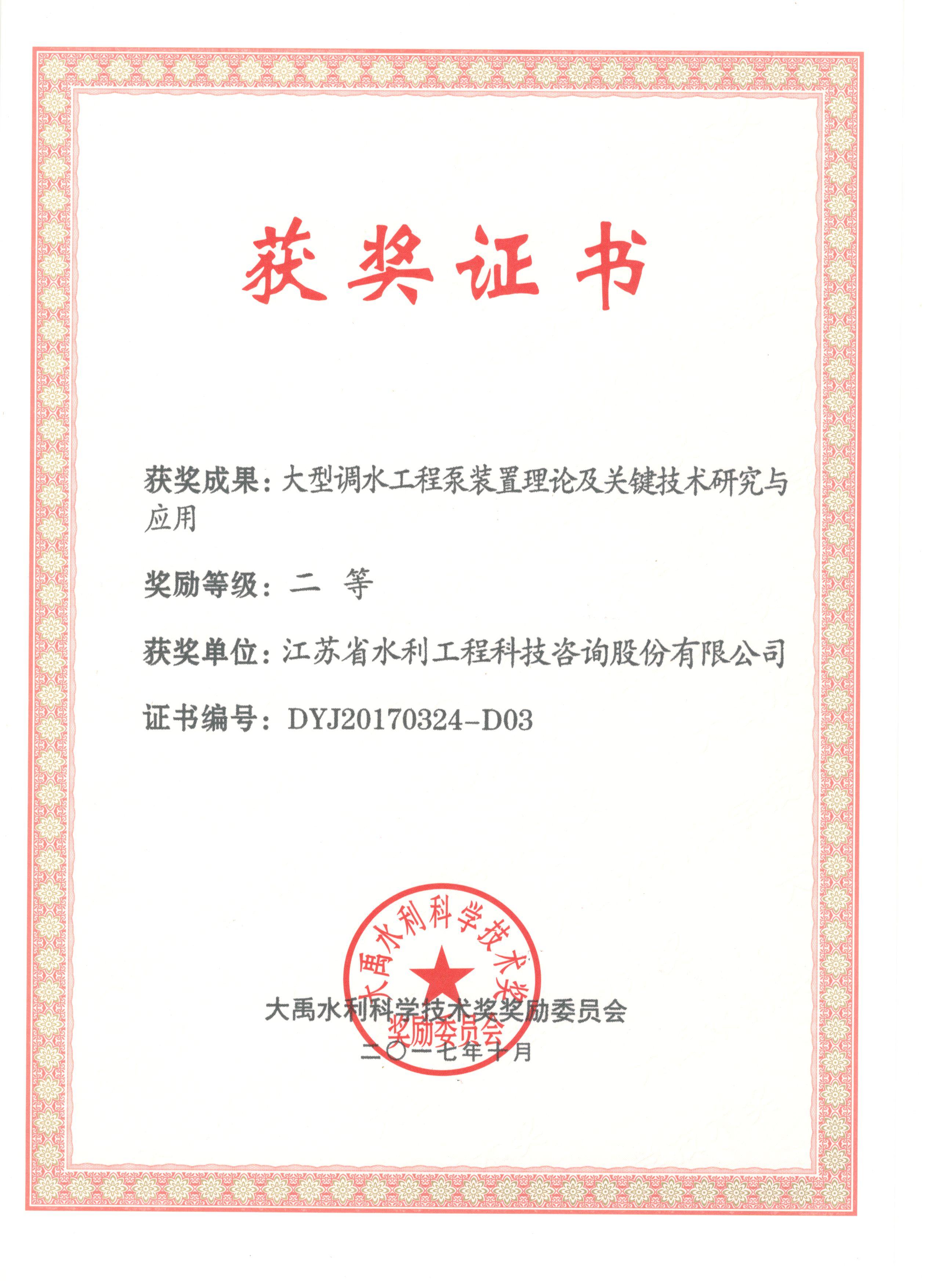 | 公司喜獲大禹水利科學技術獎作者:admin 來源: 日期:2018-4-23 15:55:06 人氣: