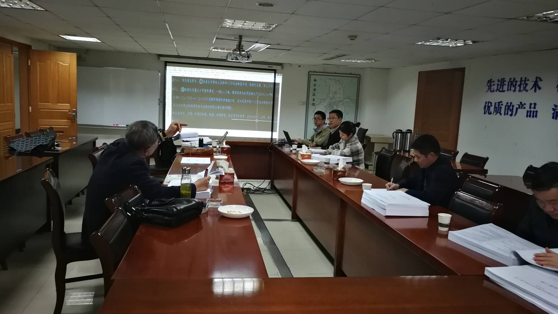 經(jīng)過公開招標,我公司承擔了《南京市滁河近期防洪治理完善工程施工圖》技術咨詢?nèi)蝿眨窘M織了土建、水機、電氣、房建等專業(yè)的專家,審閱了圖紙,于2019年4月2日參加南京市六合區(qū)滁河近期治理完善工程建設處在南京組織召開了該工程施工圖咨詢意見交換會,參加會議的還有六合區(qū)水務局、南京市水利規(guī)劃設計院有限責任公司等單位的專家和代表。 該工程主要建設內(nèi)容:治理堤防46.17公里,包括堤身加固41.83公里、防滲處理6.07公里,新建護坡12.34公里、護岸6.96公里,新建堤頂?shù)缆?span lang="EN-US" style="font-family:FangSong_GB2312;font-size:18px;">45.55公里,白蟻防治46.17公里等;改建穿堤涵洞7座,新建、拆建泵站13座,設計流量0.1~10立方米每秒;新建橋梁1座,凈寬7.0米;滁河入江口切灘5公里。總投資4.5億元。 會上我公司咨詢專家對河坡底格梗布置、拋石防護、預應力直板樁接縫處理、泵站地基處理等提出了許多合理化建議,幫設計單位完善了設計圖紙,提高了河坡防護和建筑物結(jié)構(gòu)安全性。