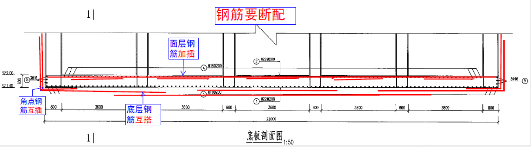 為提高溧水經(jīng)濟(jì)開發(fā)區(qū)圩區(qū)排澇能力,新建三丫圩、章西圩、凌莊圩3座排澇站工程。三丫圩排澇站設(shè)計(jì)排澇流量13m3/s,主泵采用5臺(tái)900ZQ-85D型潛水軸流泵,總電機(jī)功率1250千瓦;章西圩排澇站設(shè)計(jì)排澇流量10m3/s,主泵采用4臺(tái)900ZQ-85D型潛水軸流泵,總電機(jī)功率1000千瓦;凌莊圩排澇站設(shè)計(jì)排澇流量7m3/s,主泵采用3臺(tái)900ZQ-85D型潛水軸流泵,總電機(jī)功率750千瓦。 會(huì)上我公司咨詢專家對(duì):泵站引河與周邊河道平面銜接;出水池隔水墩布置;沉管灌注樁樁長、樁距;翼墻配筋;電氣設(shè)備布置等提出了許多合理化建議。 指導(dǎo)設(shè)計(jì)人員鋼筋混凝土結(jié)構(gòu)配筋要堅(jiān)持“兩原則、六字方針”,兩條原則:①滿足構(gòu)件最小配筋率要求;②滿足構(gòu)件極限承載力要求和構(gòu)件正常使用極限狀態(tài)下裂縫開展寬度及撓度變形要求。配筋六字方針:“斷配、互插和互搭”。以泵室配筋為例,泵室為框架結(jié)構(gòu),各框架固支連接點(diǎn)外側(cè)鋼筋適當(dāng)加長,互插借用,變構(gòu)造鋼筋為受力鋼筋,增加角點(diǎn)抵抗彎矩值;隔墩處底層鋼筋互搭;面層鋼筋中間加插加強(qiáng)短筋。如下圖所示: