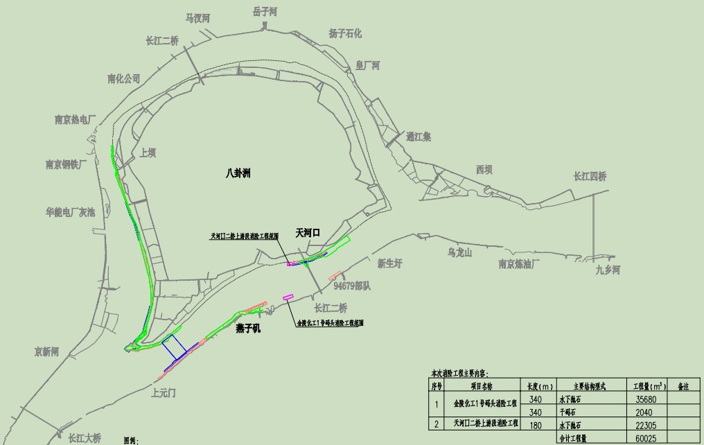 金陵化工1號碼頭出險段位于長江八卦洲右漢南岸,上游距燕子磯歷史已加固岸線末端1.0km,屬于歷史未加固段。根據(jù)近年來水下地形圖比對,金陵化工1號碼頭崩塌段、天河口二橋上游歷史加固段前沿水下岸坡出現(xiàn)不同程度的沖刷,對該段水下岸坡穩(wěn)定產(chǎn)生不利影響。2020年12月14日南京市水務(wù)局以“寧水運管[ 2021 ]429號”文件批復(fù),對金陵化工1號碼頭和天河口二橋出險段進行除險加固,主要建設(shè)內(nèi)容為:對長江堤防金陵化工1號碼頭坍塌段340m岸坡采用水上干碼石和水下拋石護岸加固;對天河口二橋上游段180m岸坡采用水下拋石護岸加固。 (供稿:設(shè)計分公司盧士亮) |