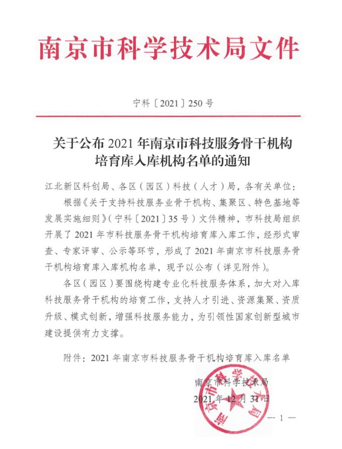 | 公司成功獲批2021年南京市科技服務(wù)骨干機構(gòu)作者:admin 來源: 日期:2022-1-5 13:41:05 人氣:
