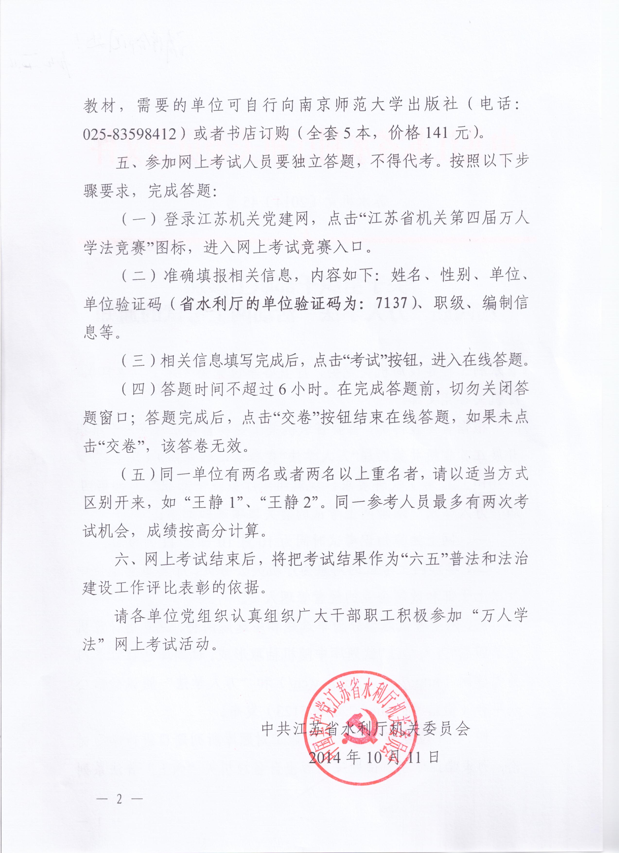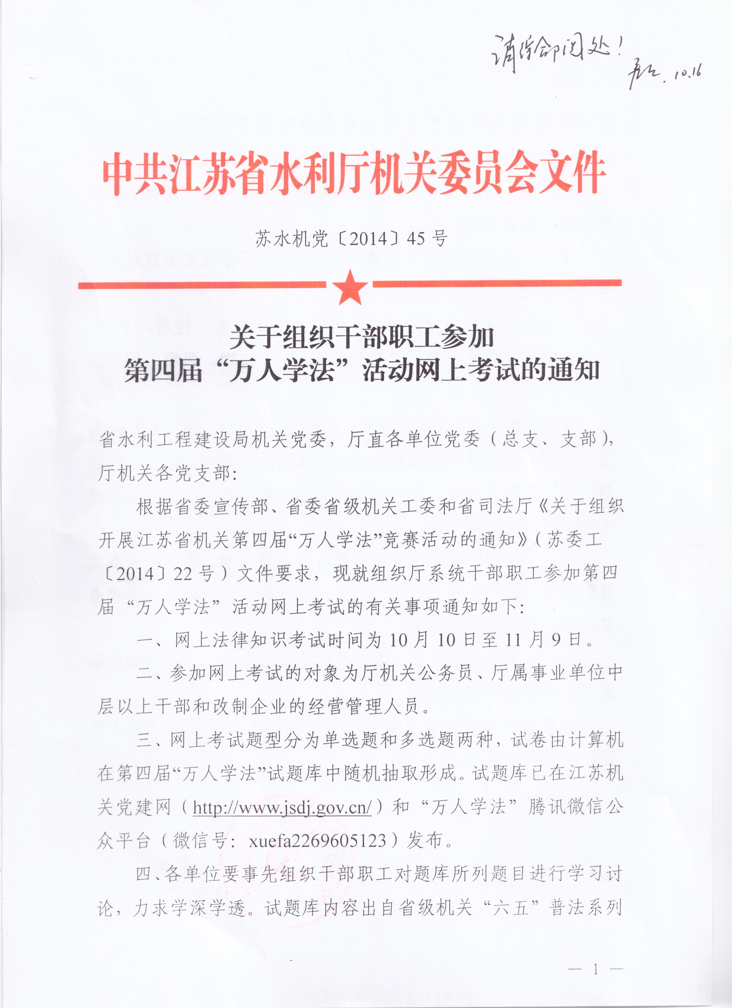 關(guān)于組織干部職工參加第四屆“萬人學(xué)法”活動網(wǎng)上考試的通知作者:admin 來源: 日期:2014-10-16 17:06:11 人氣: